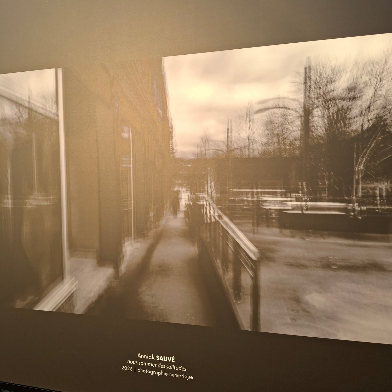 Cette récente série de la photographe Annick Sauvé s'inspire du mouvement ICM, Intentional camera mouvement ou Mouvement intentionnel de la caméra. Ce procédé combine l'impulsion de l'appareil photographique à un temps d'exposition plus long, pour créer des effets de flou volontaire dans l'image finale. les sujets ne sont pas figés en place mais plutôt légèrement brouillés et brossés comme sur une cuvre picturale. Annick Sauvé capte des coins de rues iconiques du Centre-Ville de Sherbrooke avec cette technique pictorialiste et offrant une vision différente de la ville, sous un nouveau point de vue.